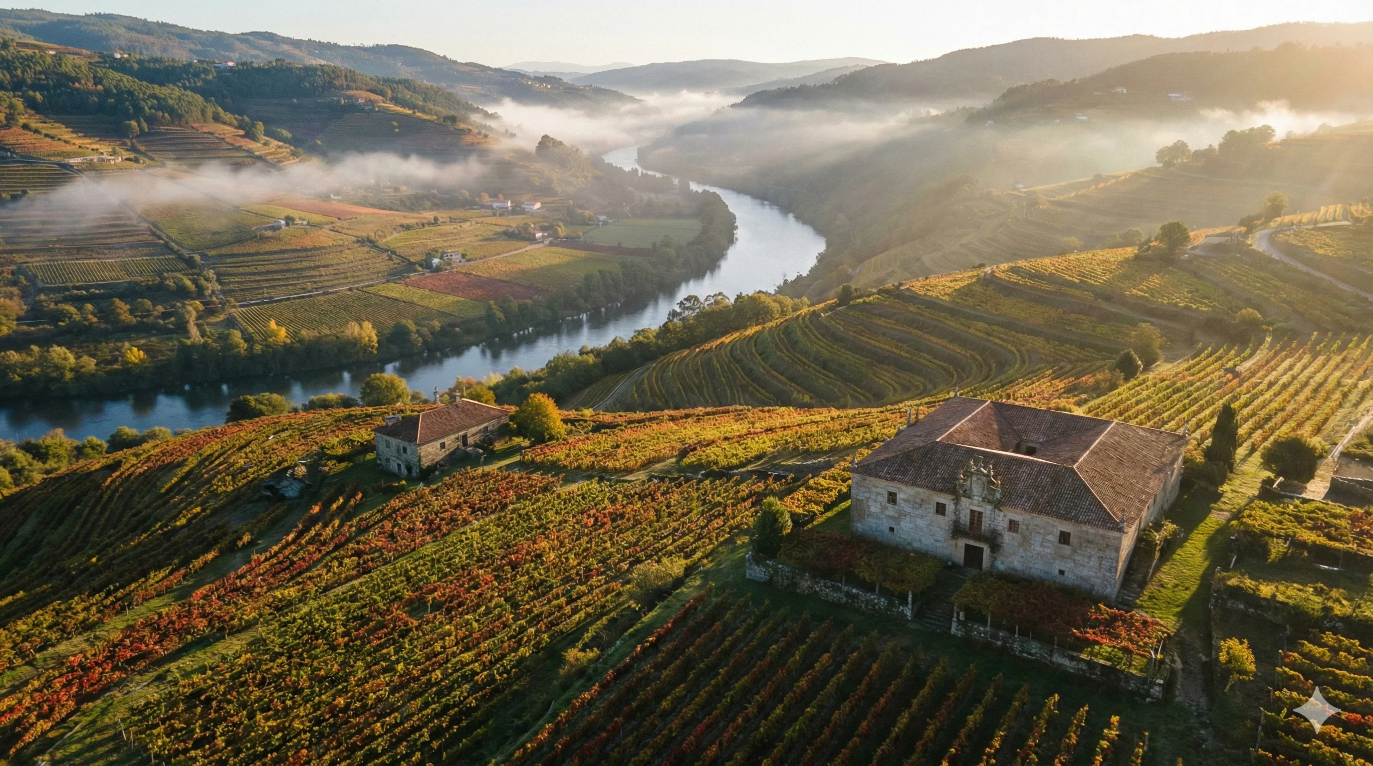 - Pazo da Cavadina: Baroque manor in Astariz, Castrelo de Miño — two-story building with chapel, on a steep slope above the Miño valley